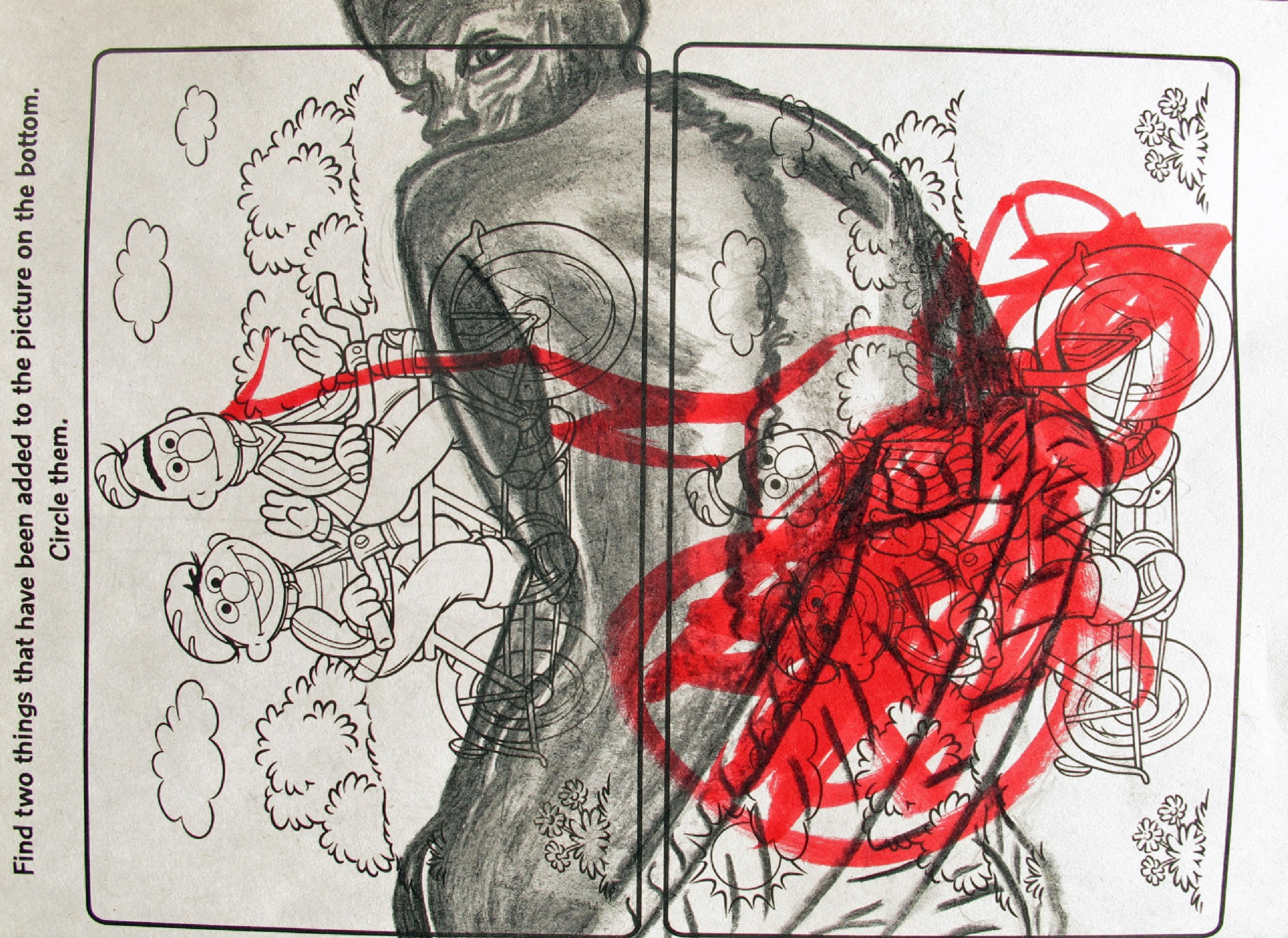 “Circle Them,” 2013, pencil and marker on coloring book page, with M. Deskins.