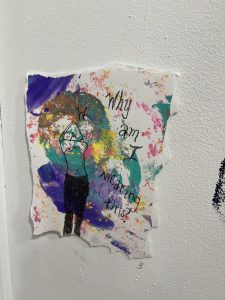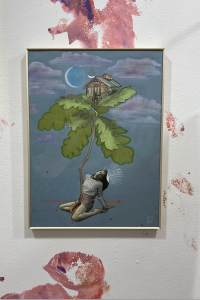 Indeed…a dark statement but an important, sad acknowledgement that should be more openly discussed–not just among women. Aesthetically, I love the brushstroke style, and how in the woman image, it almost looks like though the right hand becomes one with the vagina…obscurity and blending of meaning and perspective is provocative…Trilety’s other works in the show are more playful and fun (go visit to see!!). I believe I also met Trilety through my blog interview…and have been artsy comrades since…