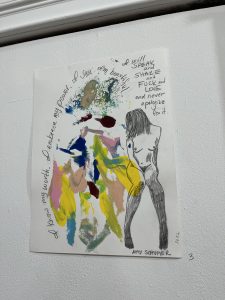 At right is just a me interruption – one of my self-portrait body print drawings with a quote about freedom, when I was pondering and processing after the overturning of Roe v. Wade.