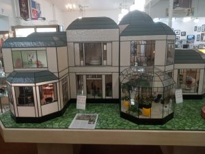 Last shout-out to the Museum of American Glass in West, WV. Holy cow SO MUCH GLASS! Not just dishware but sculpture and random knick knacks and keepsakes…I loved the collection of collectible Smurf glasses from McDonald’s from the 1980s, and this incredible glass dollhouse, with miniature glass furniture, art and even an outdoor fountain! That’s the house below and that’s the interior – see the bar with wine and glasses, and the kitchen through there. Incredible!
