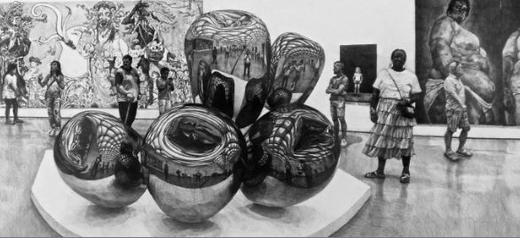This is graphite on paper! Art within art! People! Action! Jenny Saville! Oh how I love it!