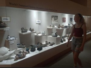 YES, this is two white men–did the Museum acknowledge the Indigenous beginnings of decoys? Thankfully YES! In The Decoy in Time Gallery (small pic below from website; for some reason my photo isn’t uploading.) You can see a mannequin man with a large gun, he’s sitting in an actual hunting boat replica with decoys around him! Super cool.